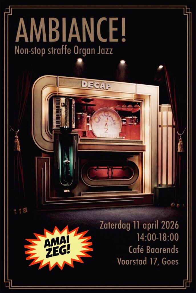 Voor liefhebbers van Decap orgels in hun originele habitat speelt het 72 toets Decap orgel van Dave von Raven op 11 april in Café Baarends te goes. Kom langs neem vrienden mee, drink een drankje en waag een dansje! Het orgel speelt van 14:00 tot 18:00