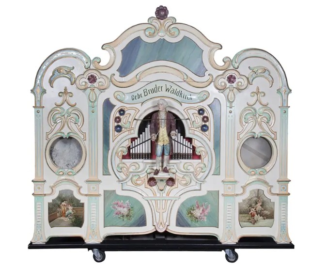 De Gebrüder Bruder bouwden rond 1920 dit exemplaar van hun model 107 in hun werkplaats in Waldkirch (Zwarte Woud, Duitsland). Het orgel speelt op een 52 Tonstufen-klavier. Daarbij worden de gaten in de orgelboeken niet afgelezen door toetsen, maar door luchtdruk. Omdat het orgel gebouwd is als kermisorgel, heeft het tijdens zijn ‘werkzame leven’ in een draaimolen en luchtschommel gespeeld – totdat kermisorgelliefhebber Jan van Dinteren het in 1961 kocht. In 1987 schonk hij het aan Museum Speelklok.